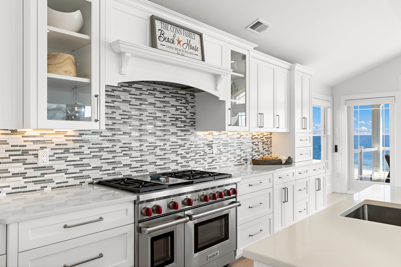 Rivaling a five-star boutique resort in the most exclusive and prestigious location on LBI, this impressive island-inspired estate presides over 130+ feet of oceanfront. The lavish showplace totals 7322 square feet with 8 bedrooms, 8 full baths, 3 half baths, and parking for several cars. Preluded by a dramatic entrance through a double glass door entry, the living spaces unfold in an open floor-plan capturing gorgeous Atlantic views from nearly every room. Awe-inspiring ocean views fill the main living room through walls of glass then flow to the banquet size dining room. The breathtaking space continues to the gourmet kitchen, truly a culinary showpiece with hand made custom cabinetry that complements the pristine lattice quartz counters. High-end appliances include the Sub-Zero refrigerator, Wolf range, and double ovens, & Bosch dishwashers. Stretching across the entire southern elevation, the grand master suite opens to a waterfront balcony capturing panoramic views of the Atlantic coastline. The master suite is accompanied by a sumptuous marble bath with jetted tub, walk-in shower, water closet, & 2 wardrobe rooms. Giving an unmatched lifestyle experience, this magnificent estate continues to the middle floor with a glass lined open family room commanding more water views, then joins the space to the outdoor lounge area, fire pit, and artfully designed pool area. Exquisite finishes carry through to five bedrooms, five full baths, and a half bath, then continues to the ground floor with two additional bedrooms, theater room, billiard room or fitness studio. Offering the ultimate in resort-style living, this impressive brand new estate will be one of the finest residences in Loveladies - which equates to the finest on the northeastern seaboard.